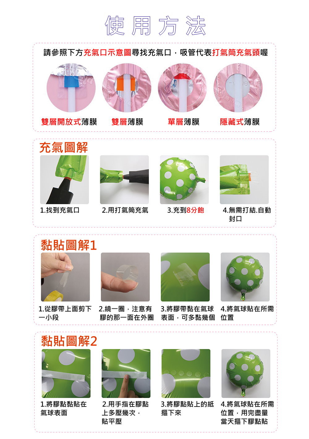 【♥~另有金色款、銀色款、漸層款的賣場喔~♥】 【充氣注意】 ➣氣球打氣建議不要衝太大(以免會爆掉~切記!) ➣鋁膜氣球的請充氣8分飽即可 ➣充氣時或是放氣時都要平放,力道要小要慢慢充氣或是慢慢放氣 ➣因氣球屬於特殊產品,不可能出貨前一一充氣檢查,所以收到貨物時請及時檢查氣球是否有漏氣現象, 請自行用透明膠將漏氣位置粘好,可以繼續使用,介意的請勿下單。